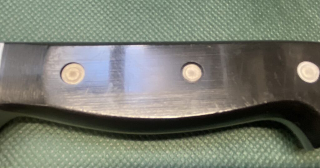 Infatti, i punti di corrosione (pit) possono diventare perforanti specie dove lo spessore della lama è ridotto, come nella zona del tagliente. Di conseguenza l’arrotino è costretto ad asportare acciaio fino ad arrivare ad un punto dove la corrosione perforante non è presente. Questo causa un consumo eccessivo della lama che potrebbe essere evitato con una corretto lavaggio, prolungando così la vita dei vostri coltelli.